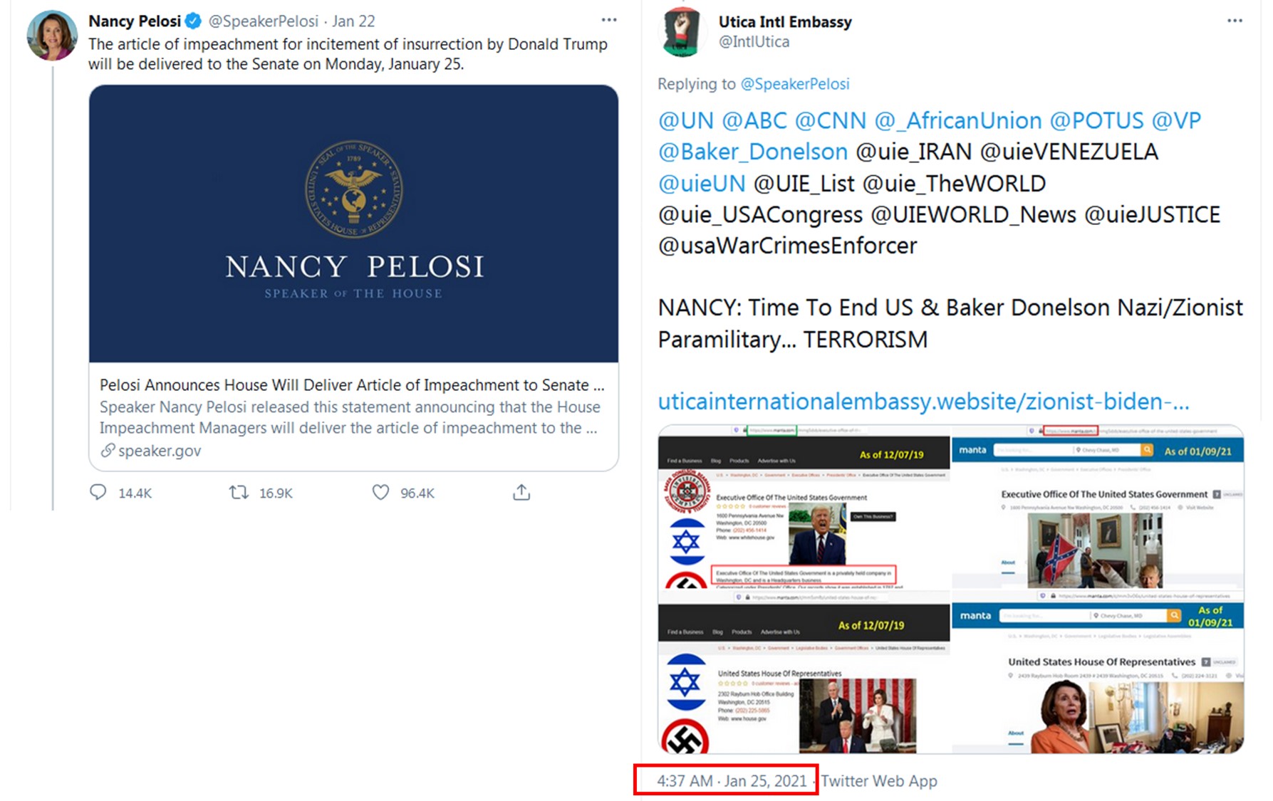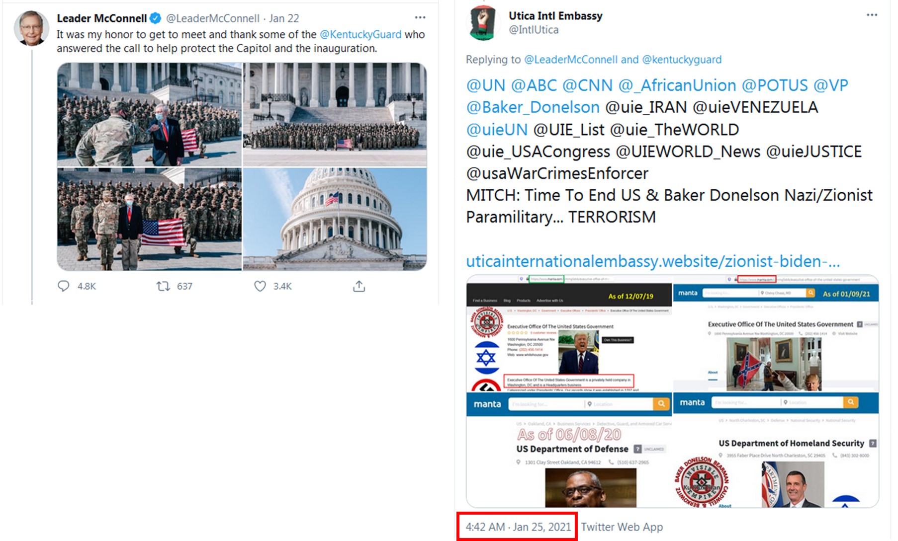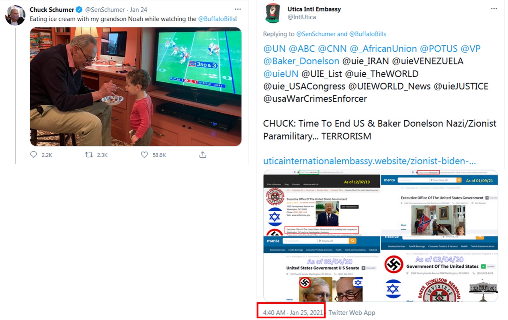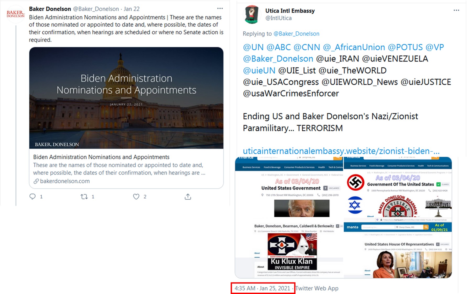 This covert operation is in RETALIATION to the Chickasaw Tribal Nation's / Utica International Embassy's Prime Minister Vogel Denise Newsome's LEADERSHIP in exposing the United States' Nazi / Zionist Officials' 13th Amendment Scams, War Crimes and Crimes Against Humanity, etc. Such covert operation IMMEDIATELY followed the Embassy's January 25, 2021, Tweets on Twitter sharing information regarding the United States' NOT being a Government; but merely a "privately held company!"