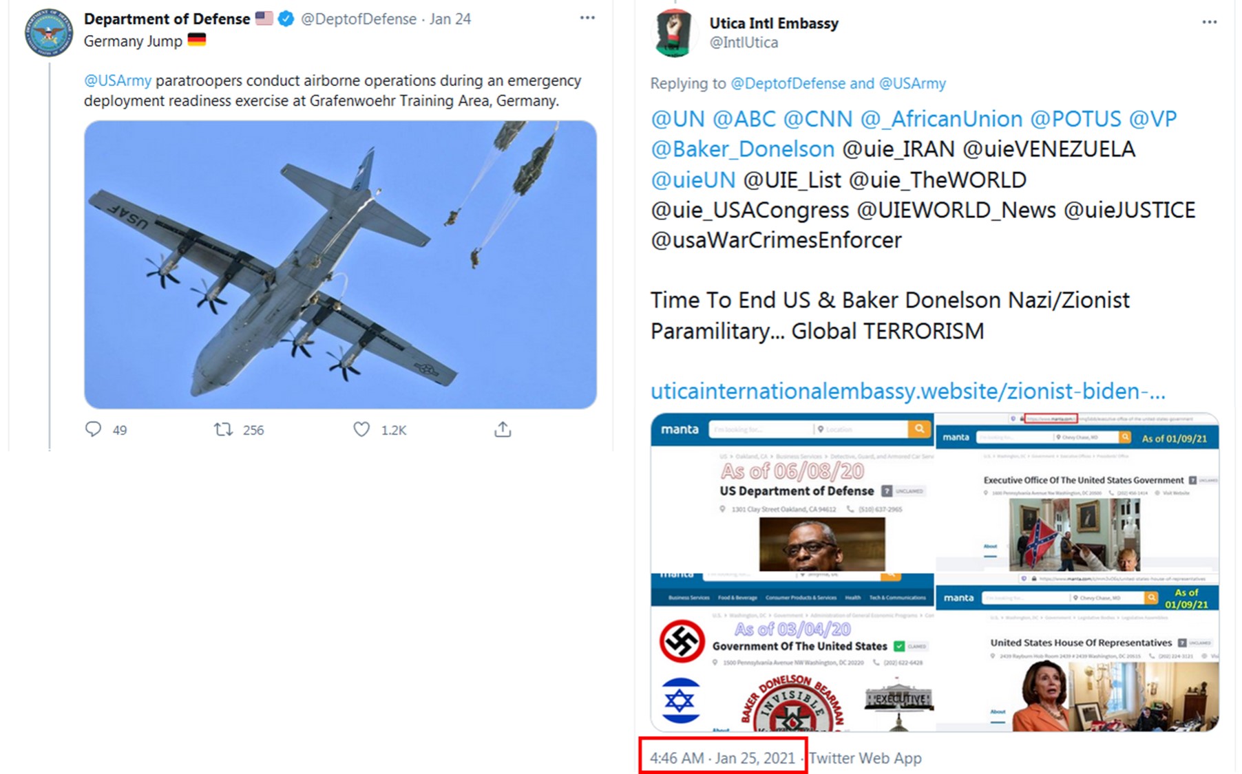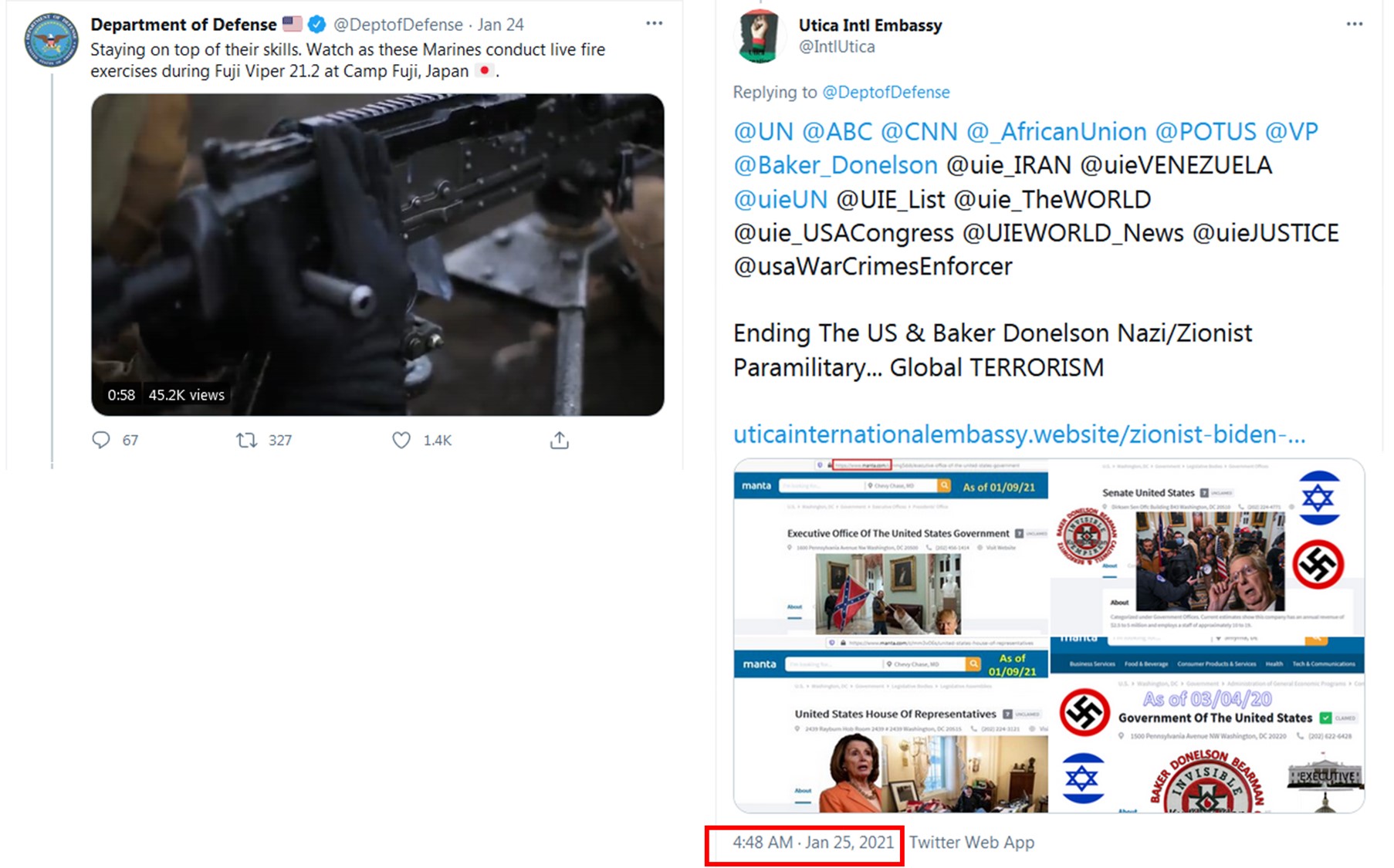 This covert operation is in RETALIATION to the Chickasaw Tribal Nation's / Utica International Embassy's Prime Minister Vogel Denise Newsome's LEADERSHIP in exposing the United States' Nazi / Zionist Officials' 13th Amendment Scams, War Crimes and Crimes Against Humanity, etc. Such covert operation IMMEDIATELY followed the Embassy's January 25, 2021, Tweets on Twitter sharing information regarding the United States' NOT being a Government; but merely a "privately held company!"